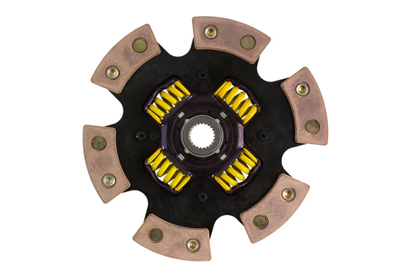 Erlebe die ultimative Leistung mit der ACT 6-Kolben-Sprung-Rennscheibe. Entwickelt für den Einsatz in der Straße oder auf der Rennstrecke, bietet diese Scheibe aggressive Kupplung, schnelle Schaltvorgänge und mäßige Getriebevibrationen.