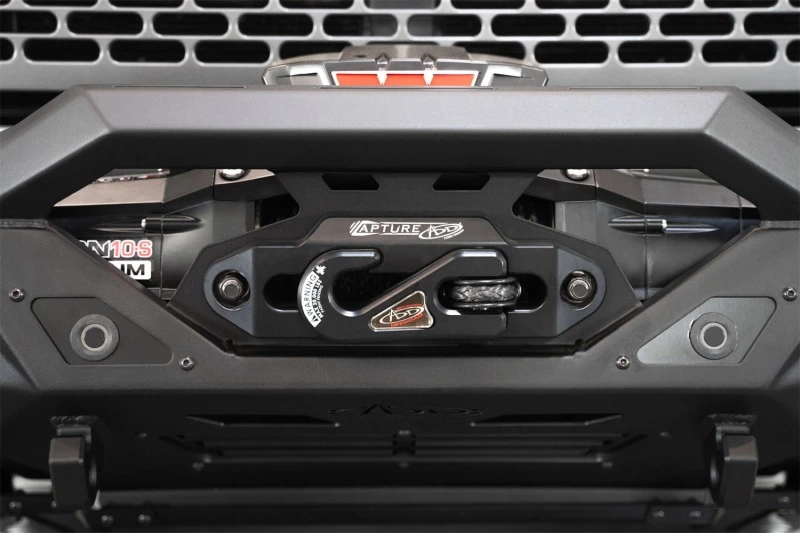 Ein geschützter Seilwindenhalter hinter der Bügelstange ermöglicht die Montage verschiedener Seilwinden. Die verstärkten Halterungen für ¾-Zoll D-Ring Schäkel bieten vielseitige Bergungsmöglichkeiten. Die Stoßstange erhält die Funktion der originalen Parksensoren und ist mit einer optionalen 3/16 Zoll Aluminium-Unterfahrschutzplatte erhältlich. Die Oberfläche ist in Hammer Black Pulverbeschichtung mit satinierten schwarzen Aluminium-Akzenten ausgeführt. Die Montage ist komplett verschraubt und die Stoßstange wird in den USA hergestellt.