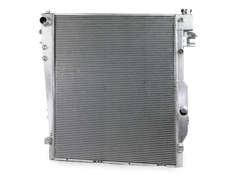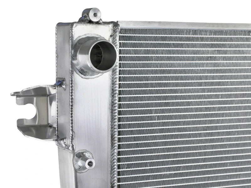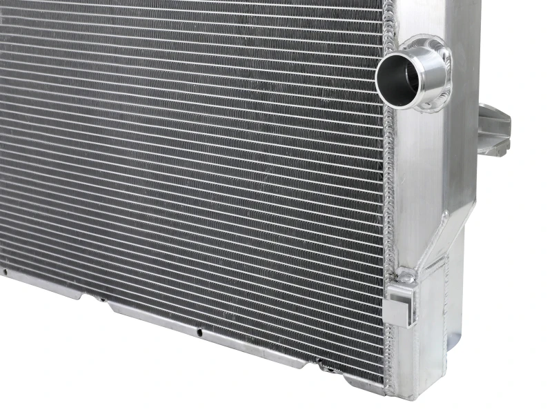 Der aFe BladeRunner Street Series Kühler bietet dank eines 2 Zoll dicken, 3-reihigen Aluminiumkerns eine um 30 % größere Kühlfläche als der Serienkühler. Hergestellt aus hochwertigem Flugzeugaluminium, sorgt er für bessere Wärmeableitung und optimierten Kühlmittelfluss, was die Kühlleistung deutlich verbessert.