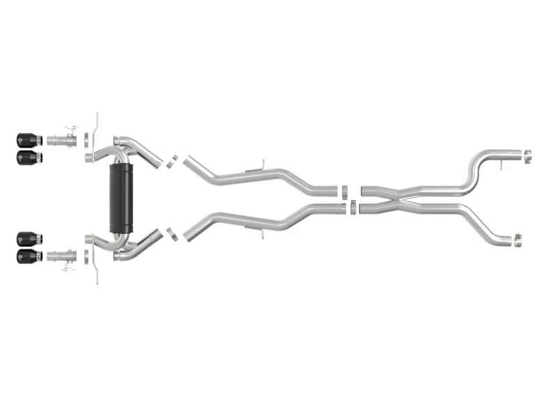 Diese Auspuffanlage ab Kat ist aus 3 Zoll auf 2,5 Zoll mandrelgebogenem 304 Edelstahl gefertigt und bietet maximale Stärke und Langlebigkeit. Der schwarze, hitzebeständige Edelstahl-Endschalldämpfer sorgt für einen kraftvollen Sound und schützt vor Korrosion. Die Anlage verfügt über vier schwarze 4-Zoll Edelstahl-Endrohre mit aFe POWER Lasergravur für einen einzigartigen Look.
