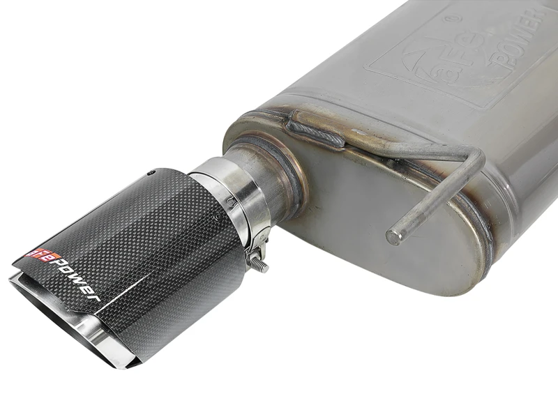 aFe MACH Force Xp SS Axle-Endschalldämpfer-System mit Carbon-Faser-Spitzen 15-17 Ford Mustang GT V8-5.0L