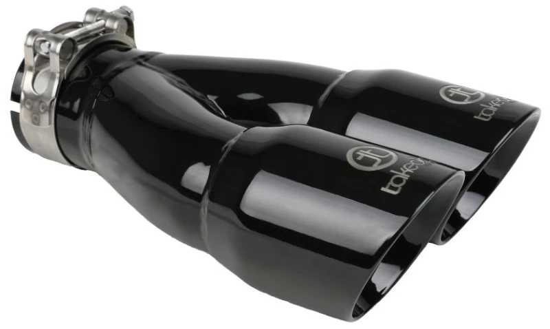 aFe Takeda 2,5 Zoll 304 Edelstahl Klemm-Auspuff-Endstück 2,5 Zoll Einlass 3 Zoll Doppel-Auslass - Schwarz