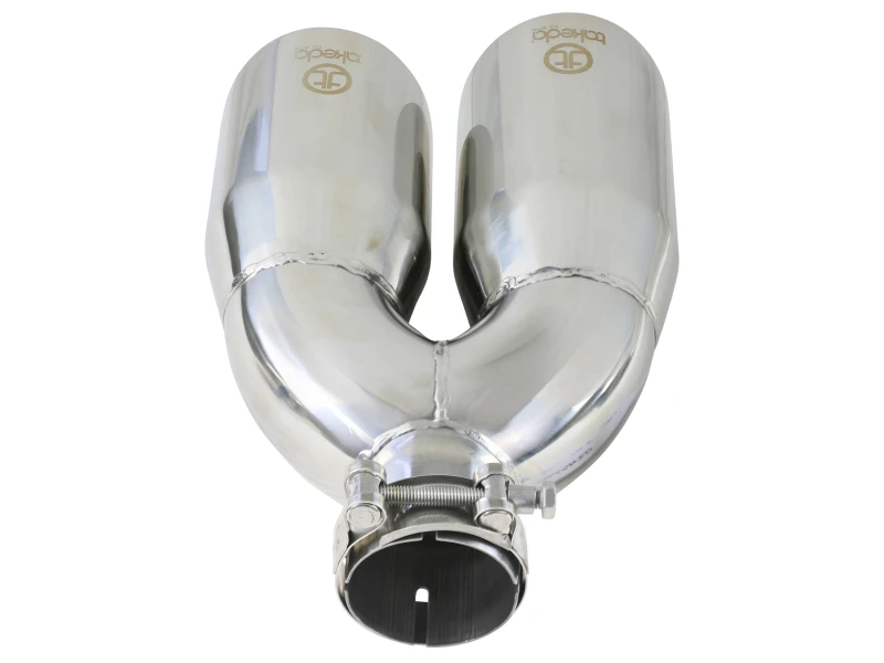 aFe Takeda Edelstahl Endrohr rechts 2,5 Zoll Einlass 4 Zoll Dual - Poliert