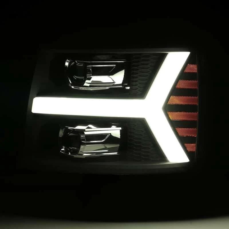 AlphaRex 07-13 Chevy 1500 LUXX LED Projektorscheinwerfer Plank Style Jet Schwarz mit aktivem Licht/Seq Signal/DRL