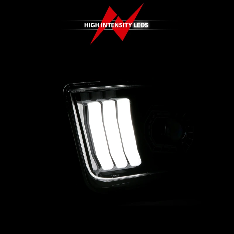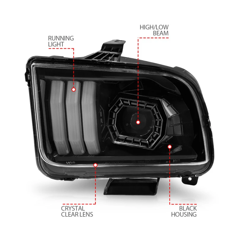 ANZO 05-09 Ford Mustang (mit werkseitigen Halogen-Scheinwerfern) Projektor-Scheinwerfer mit Lichtleiste Schwarz Gehäuse