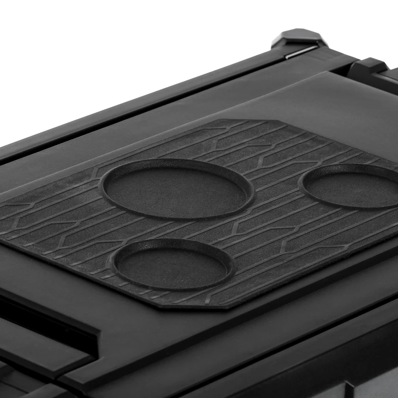 - Schnell lösbare Deckel mit Anti-Rutsch-Glas-/Flaschen-Vorkehrung