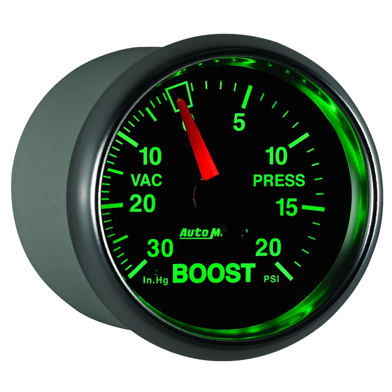 Erlebe den Industriestandard bei mechanischen Boost- und Vakuum-Messgeräten mit dem AutoMeter GS 52mm 30 in Hg/20 psi Mechanisches Vakuum/Boost-Messgerät. Dieses Messgerät verfügt über eine patentierte, hochpräzise Bourdon-Rohr-Messbewegung, die unübertroffene Genauigkeit und Haltbarkeit in selbst den extremsten Umgebungen bietet.