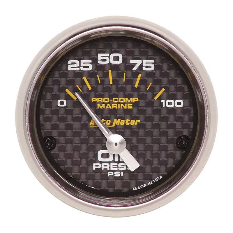 Autometer Marine Carbon Fiber 2-1/16 Zoll 100PSI elektrischer Öldruckmesser