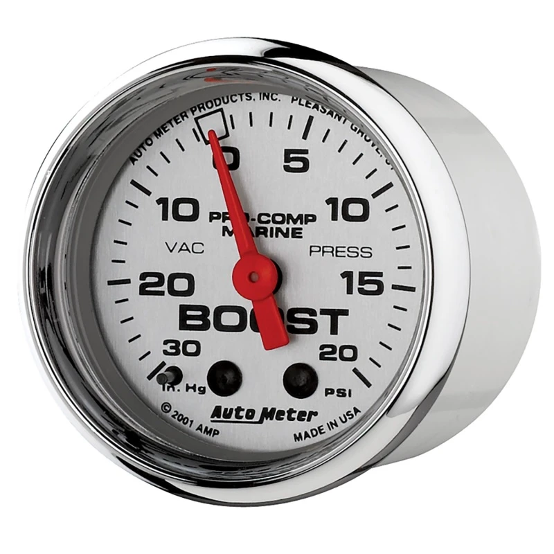 Autometer Marine Chrom Ultra-Lite 2-1/16 Zoll 0-30 HG / 0-20 PSI Vakuum / Boost-Anzeige