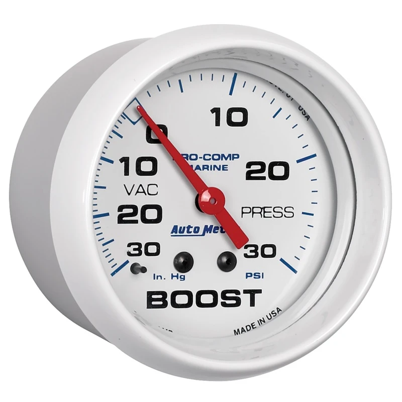 Autometer Marine Weißes 2-5/8 Zoll mechanisches Vakuum/Boost-Manometer 30INHG-30PSI