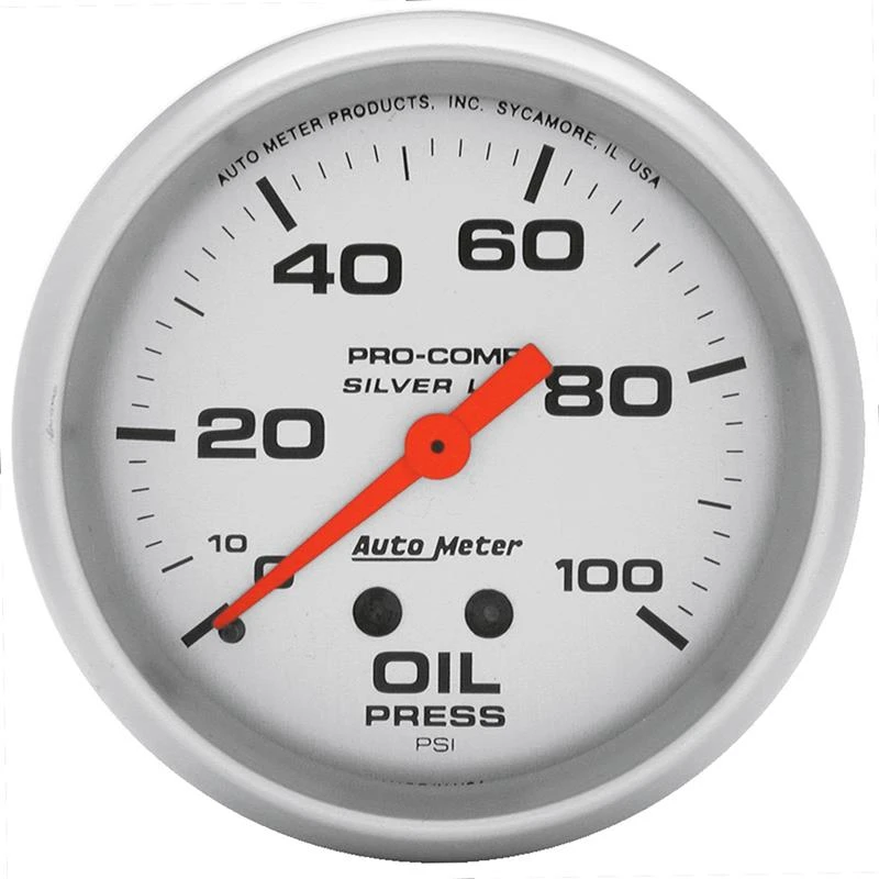 Autometer Ultra-Lite 2,625 Zoll Flüssigkeitsgefülltes mechanisches 100 PSI Silber-Öldruckmanometer