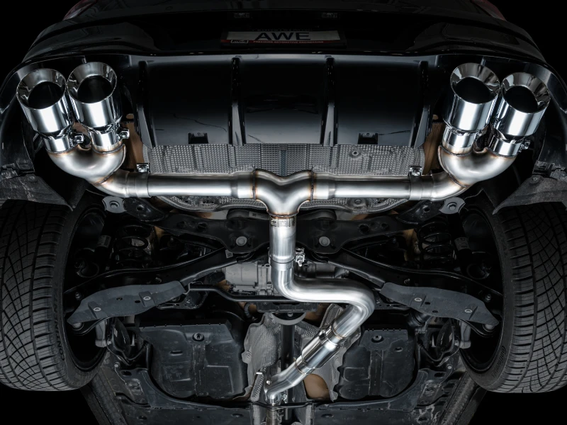 Entfessle das volle Potenzial deines MK8 Golf R mit dem AWE Track Edition Auspuff. Dieses System verfügt über einen 3-Zoll-Einlass und einen speziellen Adapter, der den Fabrik-Downpipe perfekt passt und ständig einen vollwertigen Soundtrack liefert.