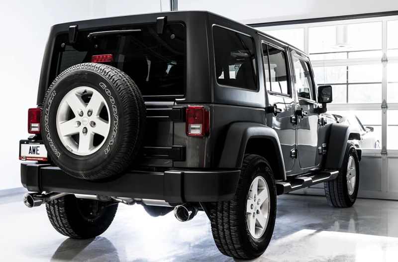 AWE Tuning 07-18 Jeep Wrangler JK/JKU 3.6L Tread Edition Axle-Back Dual Auspuff - Chrom Silber Tips
