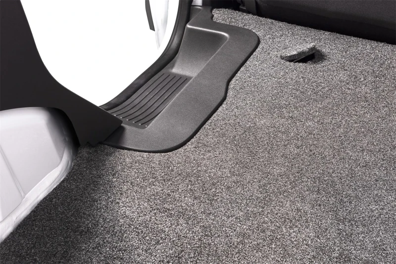 Der VanRug von BedRug ist ähnlich wie der BedRug-Mat und verfügt über eine 3/4 Zoll dicke, speziell geformte Schaumunterlage. Er sieht und fühlt sich wie Teppich an, ist jedoch für den schweren Gebrauch konzipiert. Der VanRug ist fleckenresistent und widersteht harten Chemikalien.