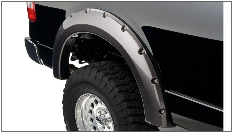 Mach dein Ford F-150 zum Eyecatcher mit Bushwackers Taschenstil-Fender-Flares. Diese Flares sind speziell für dein Fahrzeug entwickelt, um überdimensionierte Reifen und Lift-Kits zu ergänzen, ohne dass du durch den Körper bohren musst.