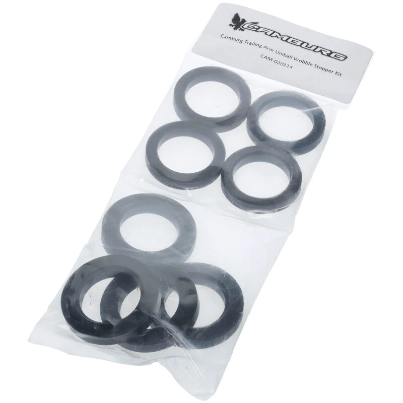 Dieses Kit enthält acht Delrin Uniball-Einsätze, die speziell für die oberen und unteren Billet-Trailing-Arms von Camburg entwickelt wurden. Die Wobble Stopper sorgen für eine präzise Positionierung der Trailing Arms während des gesamten Federwegs und verbessern so die Fahrstabilität und Lenkpräzision.