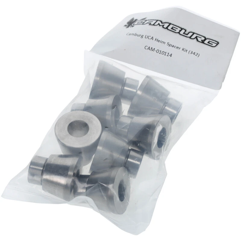 Dieses Kit enthält präzisionsgefertigte Edelstahl-Heim-Spacer für die oberen Querlenker von Camburg. Es ist speziell auf die Camburg Upper Control Arms abgestimmt und sorgt für eine exakte Passform sowie optimale Funktion.