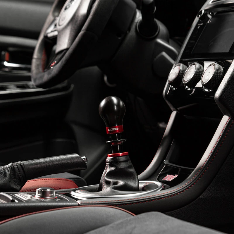 Cobb 6-Speed Weighted COBB Shift Knob - Black (Incl. Both Red + Blk Collars) for Subaru