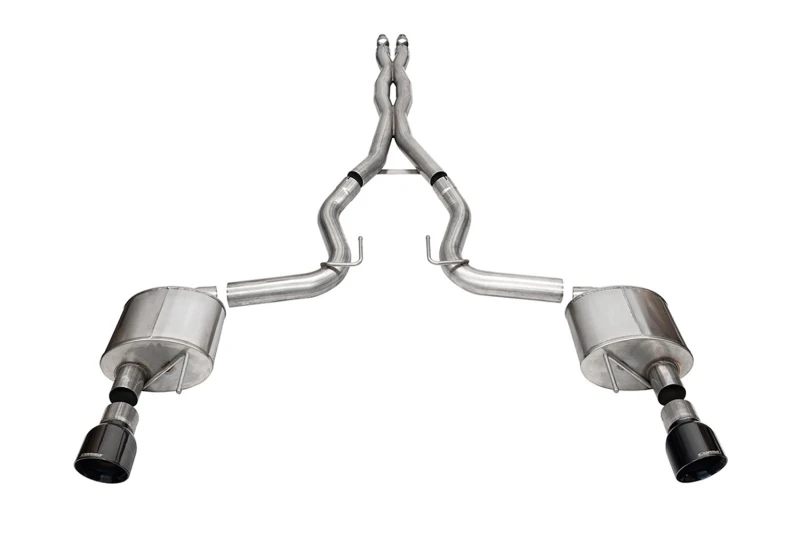 Corsa 2024 Ford Mustang GT Xtreme Kat-Back-Abgasanlage 3,0 Zoll Doppelrohrausgang mit 4,5 Zoll schwarzen PVD-Pro-Tipps