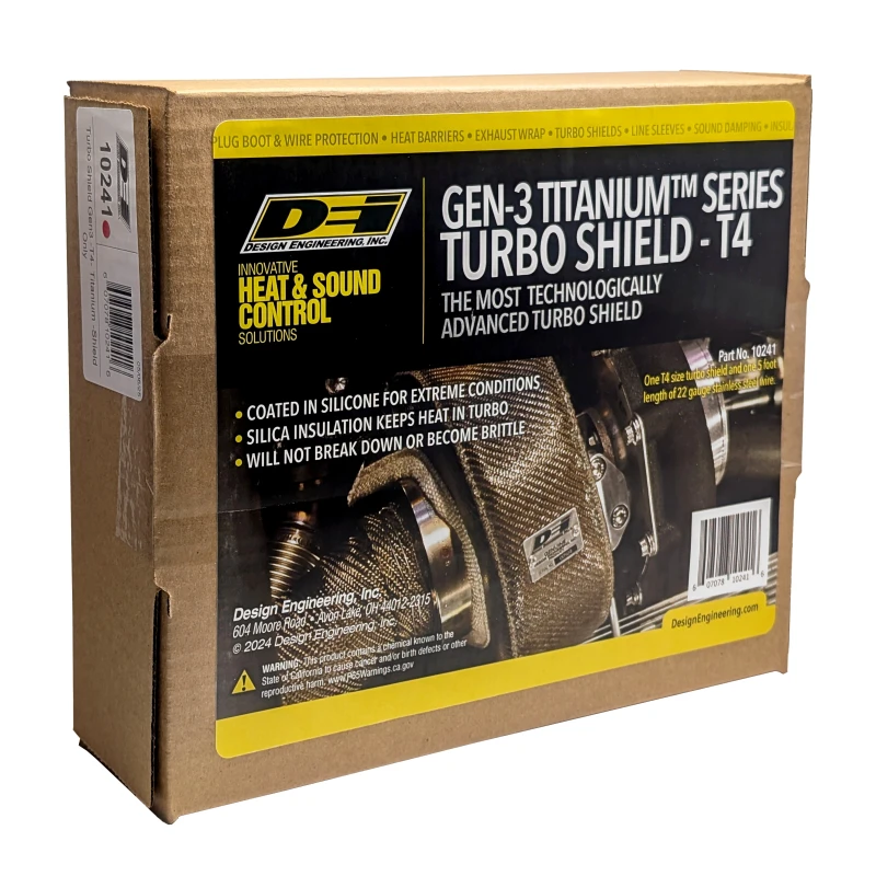 Erhöhe die Leistung deines turbogeladenen Motors mit dem DEI Gen-3 Turbo-Schutzschild T4. Dieser fortschrittliche Turboschutzschild bietet unübertroffene Hitzebeständigkeit und Haltbarkeit. Mit seiner silikonbeschichteten Titan-Außenschicht und mehreren Edelstahl- und Silica-Innenschichten ist dieser Schild der stärkste und hitzebeständigste auf dem Markt.