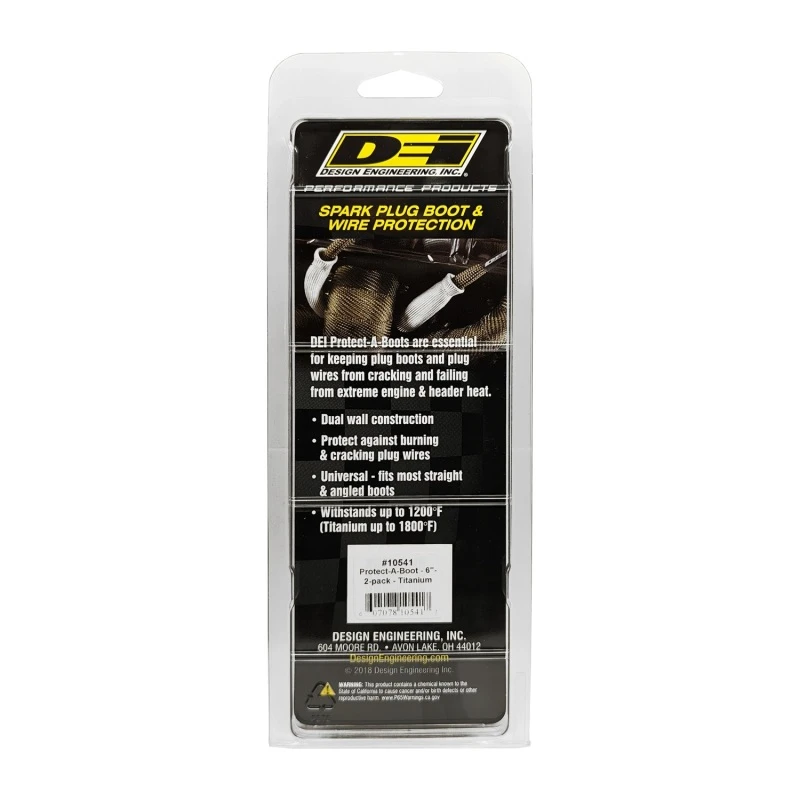 Schütze deine Zündkerzenstiefel und -kabel vor extremer Hitze mit DEI's Titan Protect-A-Boots. Diese Stiefel sind aus einem einzigartigen Material gefertigt, das aus Lavarock gewonnen wird und natürliche Resistenz gegen Hitze, Chemikalien, Abrieb und Verunreinigungen bietet.