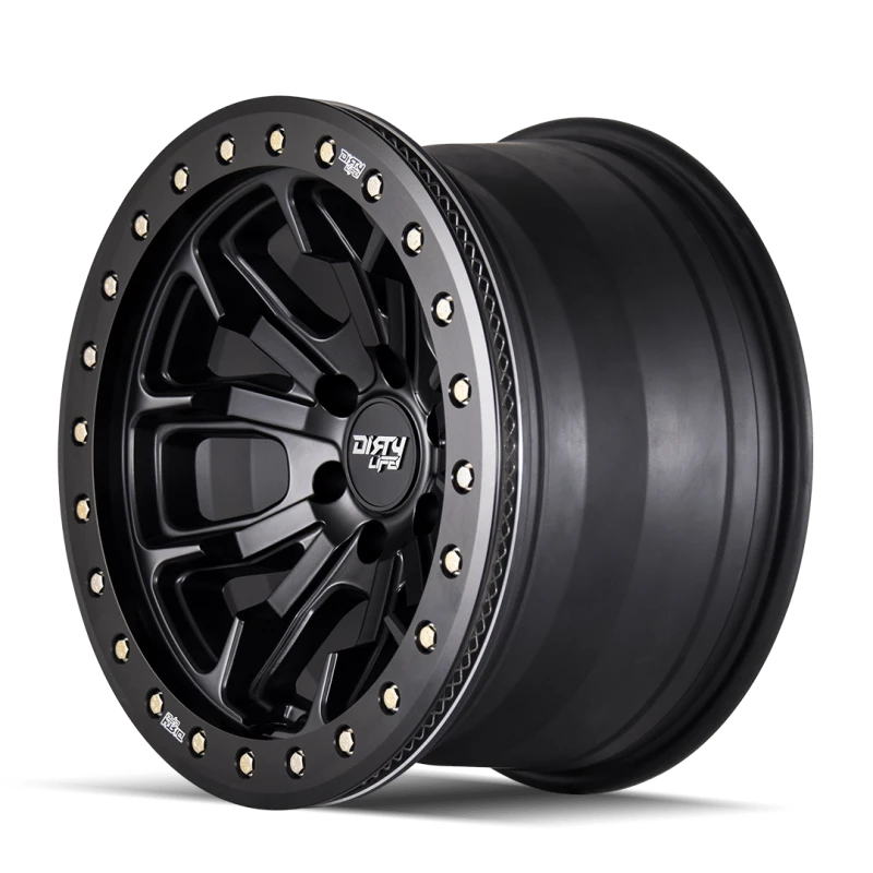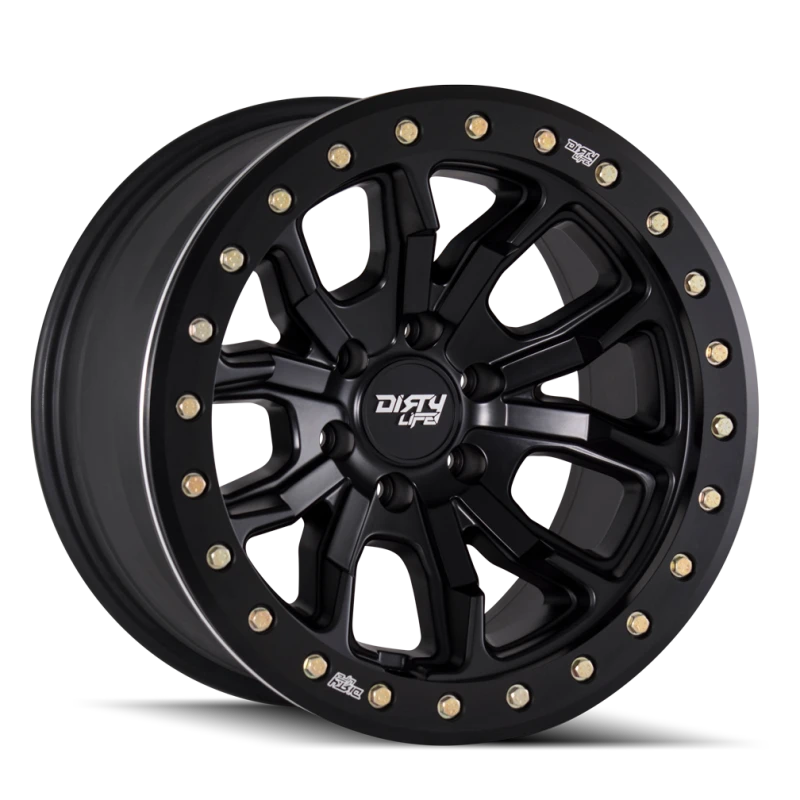 Die Dirty Life 9303 DT-1 Felge ist ideal für Offroad-Enthusiasten. Sie bietet eine innovative Dual-Tek Technologie, die es ermöglicht, die Felge sowohl als Simulated Beadlock als auch als echte Beadlock zu verwenden. Diese Felge ist D.O.T. straßentauglich und verfügt über eine matte schwarze Oberfläche.