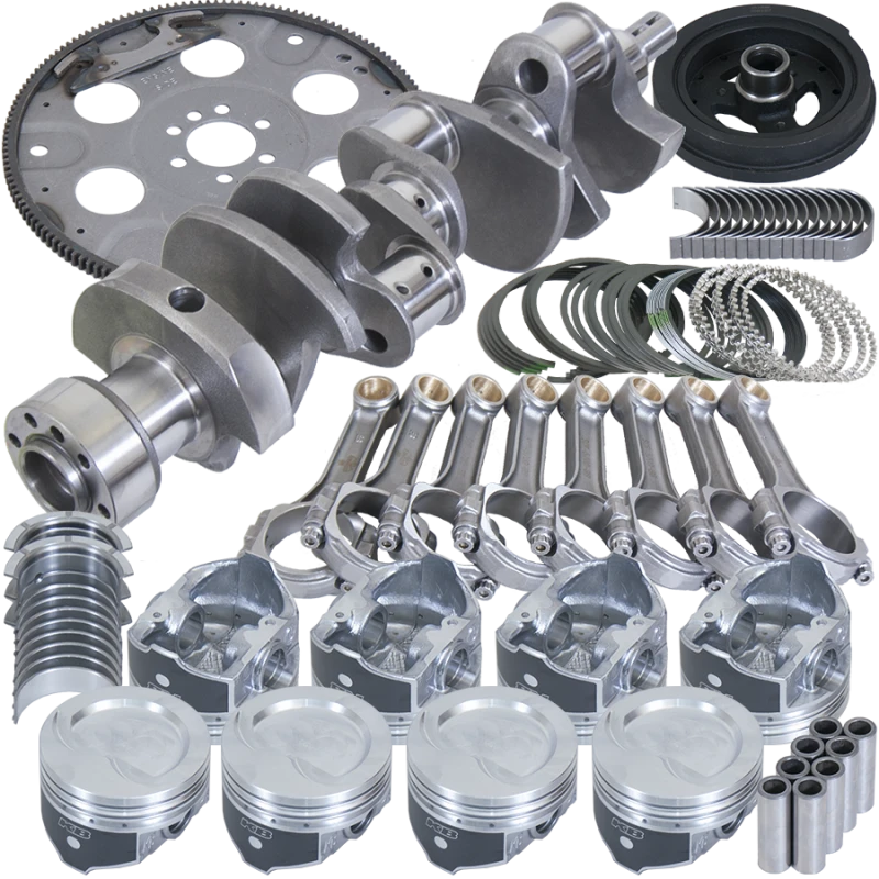 Diese ausgewogene Rotierende Baugruppe ist speziell für den Chevy 350 Motor entwickelt und eignet sich ideal für den Straßeneinsatz mit Pumpgas. Sie kombiniert eine 3,750 Zoll Kurbelwelle aus Guss, 5,700 Zoll I-Träger Pleuelstangen und 4,000 Zoll Hypereutektische KB Kolben mit umgekehrter Kuppel und 18cc Volumen. Die Kolbenringe sind aus Plasma-Moly mit File-Fit Passform, und King SI Pleuel- und Hauptlager sorgen für Langlebigkeit. Das Set enthält außerdem einen Schwingungsdämpfer und eine 153-Zahn Flexplatte.