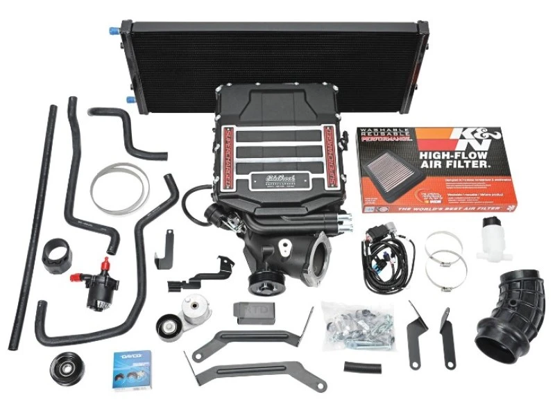 Mit dem Edelbrock Supercharger-System #15666 kannst du deinen 2019-2021 Chevy Silverado oder GMC Sierra 1500 auf das nächste Level bringen. Dieses 50-Staaten-Abgas-Kit ist für LKWs mit einem 6.2L V8-Motor konzipiert und bietet eine Leistungssteigerung von 44% auf 548 RWHP und eine Drehmomentsteigerung von 36% auf 505 ft-lbs an den Hinterrädern.