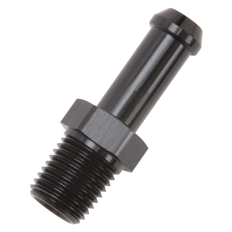 Edelbrock-Schlauch-Endstück, gerade, 1/4 Zoll NPT auf 3/8 Zoll Barb, schwarz eloxiert