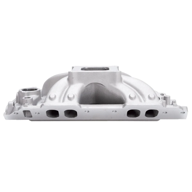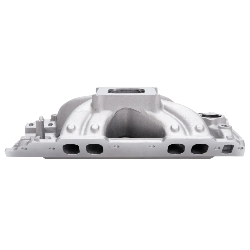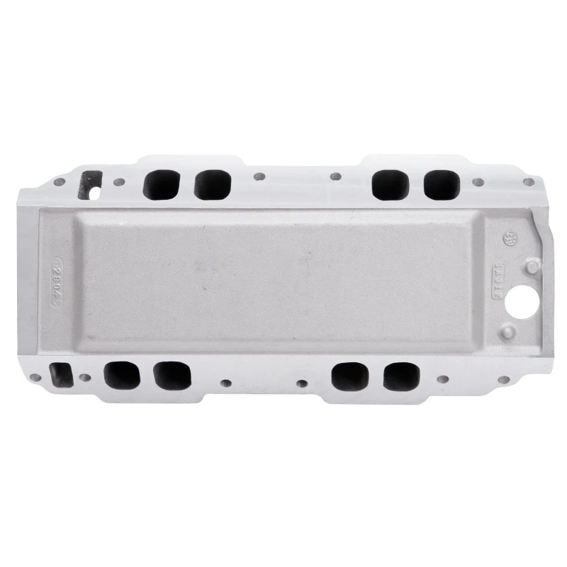 Ideal für 502 c.i.d. und kleinere Wettbewerbsmotoren, ist dieser Ansaugkrümmer mit 3/8" mehr Material in den Ecken der Ansaugöffnungen für individuelle Anpassung der Ansaugöffnungen gegossen. Paare ihn mit Edelbrock/Musi Victor 24° Pro-Port CNC-Köpfen #61419 oder #61409 für 950+ PS Leistungspotenzial!