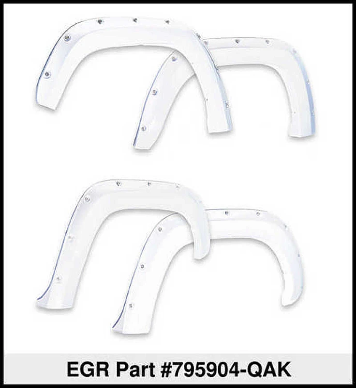 Verbessere dein Fahrzeug mit den EGR Bolt-On Look Farbübereinstimmenden Fender Flares, die OEM-Qualität und ein bohrenfreies Befestigungssystem bieten. Die vollständig farbübereinstimmenden Fender Flares erhöhen die Reifenabdeckung deiner Kotflügel um bis zu 2 Zoll.