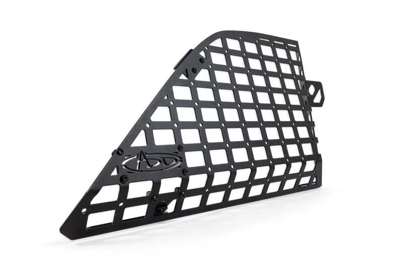 The ADD Rear Window Molle Storage Panels provide a versatile and organized storage solution for the 2021-up Ford Bronco and Bronco Raptor 4-door models. Designed to fit perfectly around the Bronco's rear roll bars and seat belts, these panels offer a polished look and can be used with or without a hardtop.