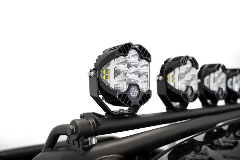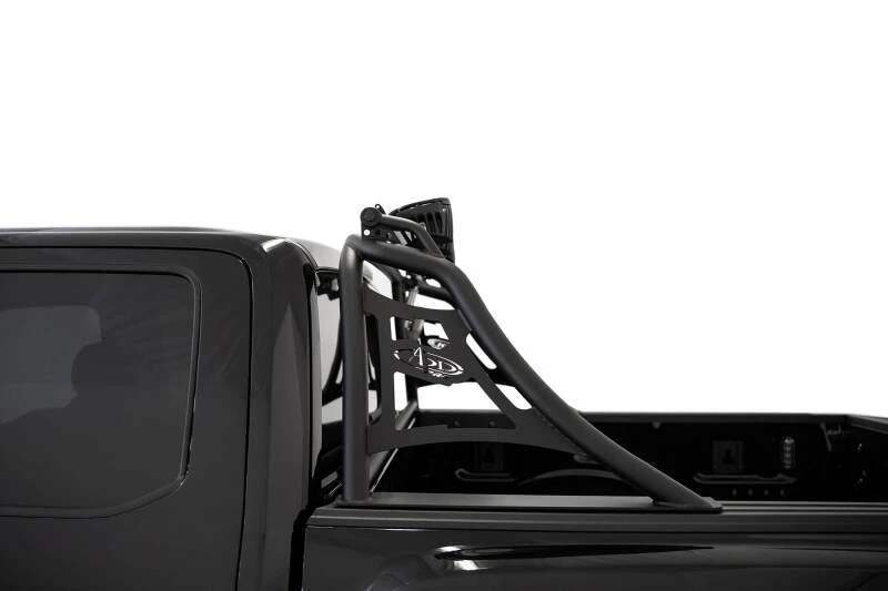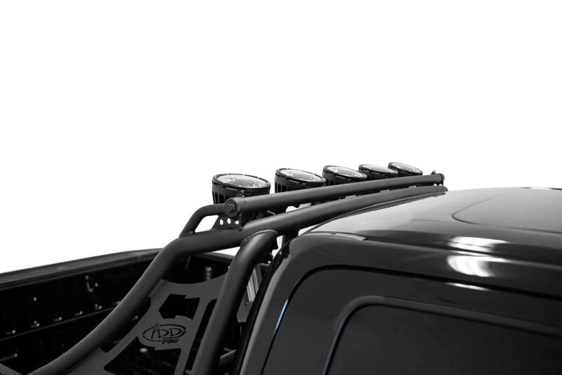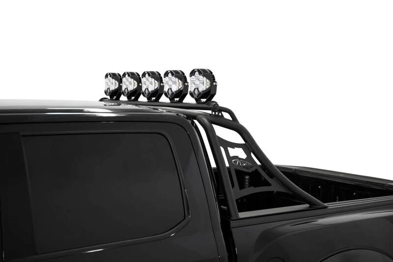Elevate your Ford F-150 or Raptor with the Addictive Desert Designs PRO Chase Rack, engineered for both performance and style. This sleek, low-profile rack features a radius main tube that mirrors the curve of the Raptor’s roof, delivering a factory-integrated appearance. The electronically actuated light hoop allows you to tuck your lights away when not in use, eliminating concerns about added height. The light hoop is equipped with five individual mounts compatible with a variety of round lights, such as Baja Designs LP6 or LP9 and Rigid Industries 360 Series 6-inch lights. Included brackets support the installation of a 50-inch straight light bar as an alternative. The clamp mounting system ensures a secure fit without the need for truck bed modifications. Finished in a durable hammer black powder coat, this rack is constructed from heavy-duty steel and proudly made in the USA.