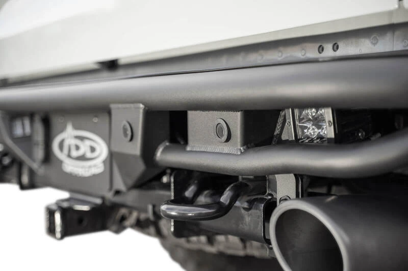 This rear bumper complements the styling and aesthetics of the ADD PRO front bumper, providing a sleek look for the rear of your truck. Constructed from .120-inch wall steel tubing for strength and durability, it features an aluminum top plate for added style. The bumper retains OEM hitch functionality and includes mounts for two rear-facing cube lights.