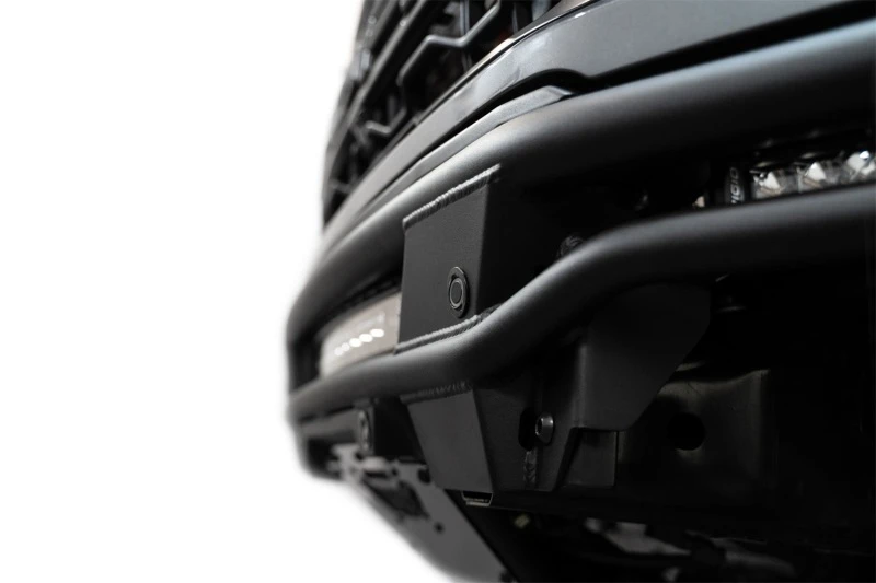 Designed for off-road enthusiasts, this aggressive tubular front bumper is inspired by desert racing and offers a low-profile design that closely follows the front body line of the Ford F-150 Raptor. It features a high-clearance build to navigate taller obstacles at faster speeds. The bumper includes mounts for a 20-inch dual-row light bar and two 10-inch single-row light bars, enhancing visibility in dark or dusty conditions. Made from American steel, it retains OEM parking sensors and supports adaptive cruise control with an ACC relocation bracket. Finished in a resilient dual-stage hammer black powder coat, this bumper complements the factory styling while providing a rugged off-road capability. Installation is 100% bolt-on.