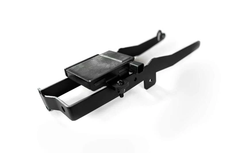 This bracket is designed to relocate the Adaptive Cruise Control sensor behind the grille, allowing for the installation of aftermarket front bumpers while retaining full functionality. It is constructed from lightweight aluminum and features a hammer black finish, blending discreetly behind the grille.