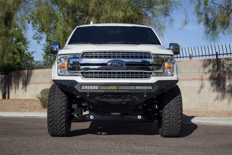 Transform the front end of your Ford F-150 with the Stealth Fighter Front Bumper from Addictive Desert Designs. Engineered for a tight, factory-like fit, this bumper features a modern radius plate steel design that hugs the contours of your truck for a sleek, aggressive appearance while delivering robust protection. The center of the bumper houses a universal light mount system, accommodating up to 10 cube lights or a 40" radius or straight LED light bar, ensuring superior illumination for off-road adventures or nighttime driving.