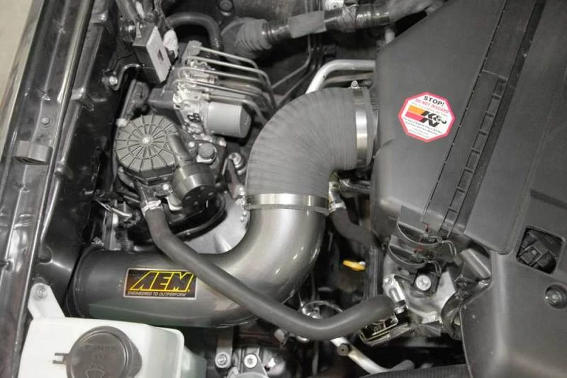 The AEM 08 Cold Air Intake features an oversized Dryflow synthetic washable air filter, relocated to the passenger-side wheel well to reduce intake air temperature and increase horsepower. The intake tubing is constructed from mandrel-bent aluminum with a durable gunmetal gray powder coated finish.