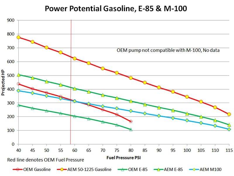 - Delivers 44% increase in fuel pressure over stock (115 PSI max pressure vs 80 PSI stock)
