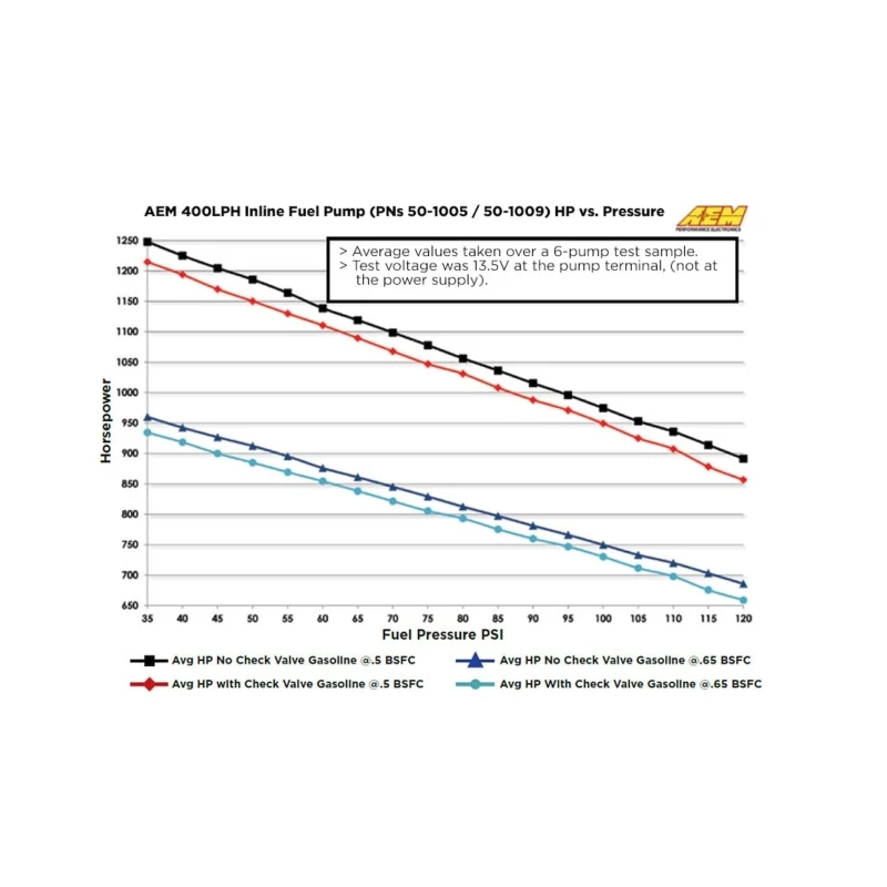 Take your vehicle's performance to the next level with the AEM 380LPH High Pressure Fuel Pump. This pump is designed for high-performance naturally aspirated and forced induction EFI vehicles, and is capable of supporting over 1,200 HP normally aspirated and 860 HP at 30 psi boost.