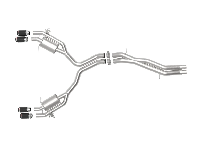 Finishing off this exhaust system are quad 3.5" diameter carbon fiber 304 stainless steel clamp-on exhaust tips, complete with an aFe POWER logo for a unique style.