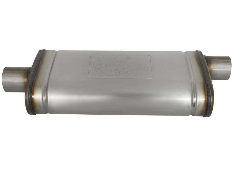 aFe MACHForce XP SS Muffler 2.5in Center Inlet / 2.5in Offset Outlet 18in L x 9in W x4in H Body