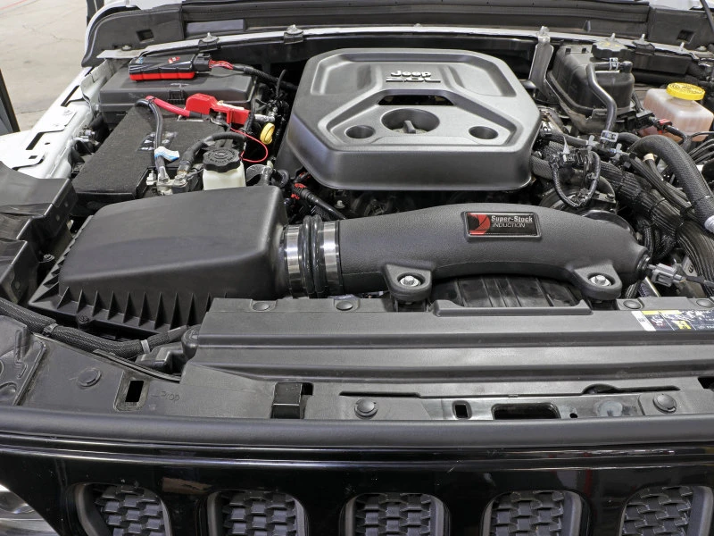 Unlock the full potential of your Jeep Wrangler JL with the aFe Super Stock Induction System. This high-performance air intake system features a Pro Dry S media filter that provides maximum convenience and filtration efficiency.