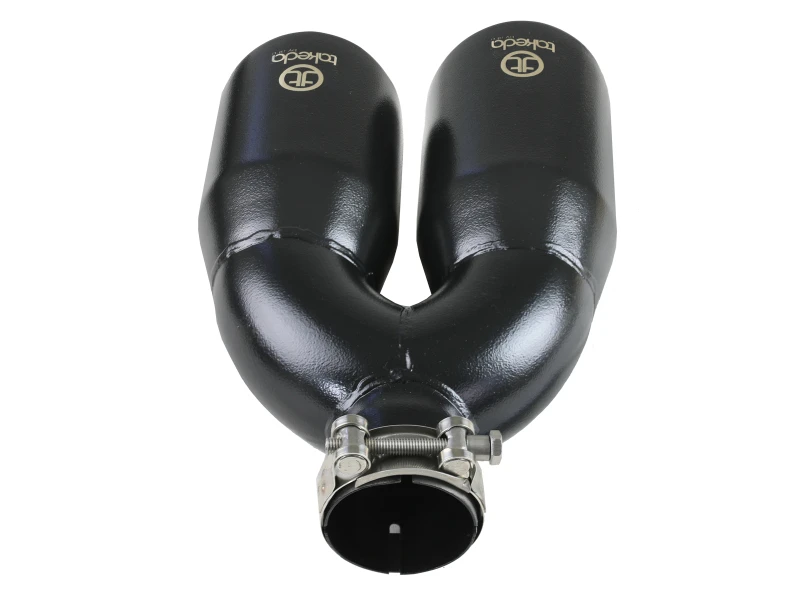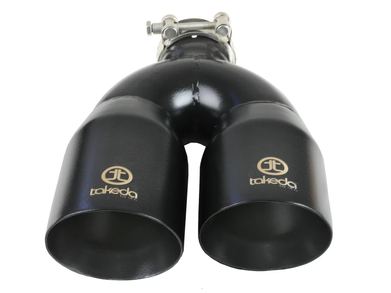 Upgrade your exhaust system with the aFe Takeda clamp-on exhaust tip, engineered from durable 304 stainless steel for corrosion resistance and long-lasting performance. This universal tip fits most 2.5" exhaust systems and features a dual staggered 4" outlet with a 12" overall length, delivering an aggressive and custom look enhanced by the laser-etched Takeda logo on its black powder-coated finish.