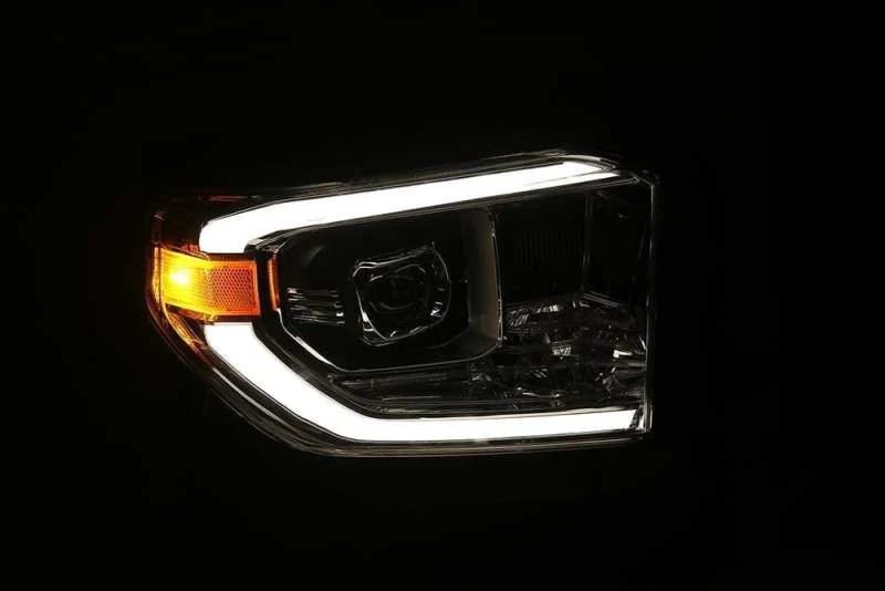Elevate your Toyota Tundra's style and performance with the AlphaRex LUXX LED Projector Headlights. Designed from inception, these headlights boast a unique plank style and alpha black finish, complete with active light and DRL functionality.