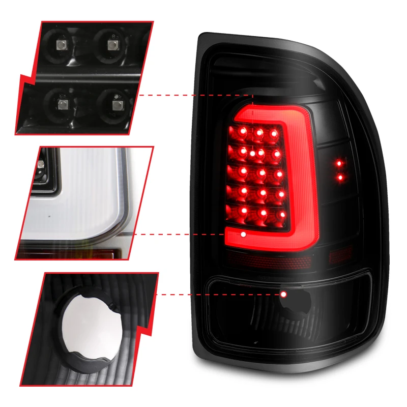 Upgrade your vehicle's appearance with these high-quality LED taillights from ANZO. With a sleek black housing and smoke lens, these taillights are designed to make your Dodge Dakota stand out on the road.