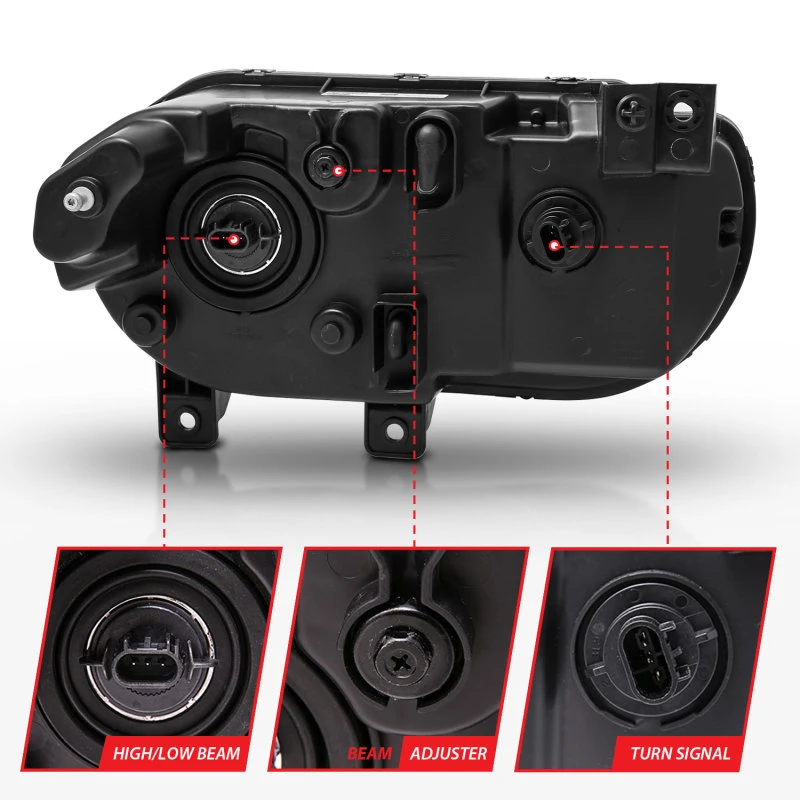 Take your Dodge Challenger to the next level with these stunning crystal headlights from ANZO. With a sleek black housing and clear lens, these headlights are designed to make a statement on the road.
