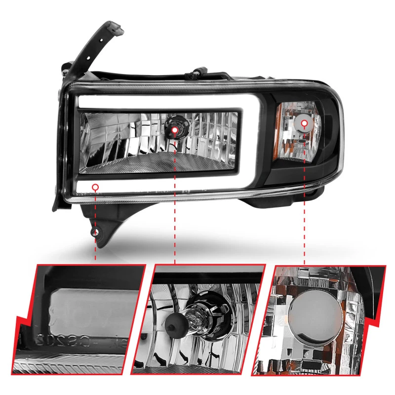 ANZO 94-02 Dodge RAM Crystal Headlight - w/ Light Bar Black Housing