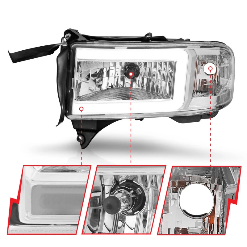 ANZO 94-02 Dodge RAM Crystal Headlight - w/ Light Bar Chrome Housing