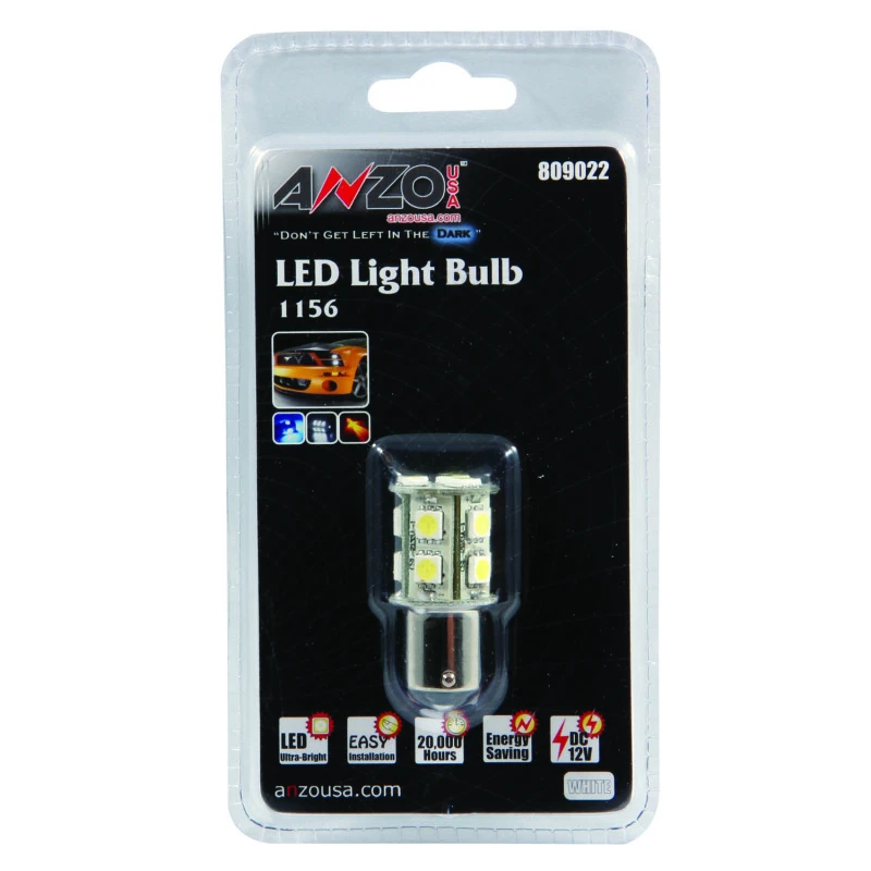 Upgrade your vehicle's lighting with the ANZO LED Bulbs Universal LED 1156 White. With 13 LEDs and a height of 1 3/4 inches, this bulb is designed to provide brighter light than comparable incandescent bulbs.
